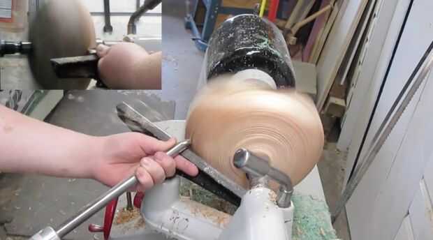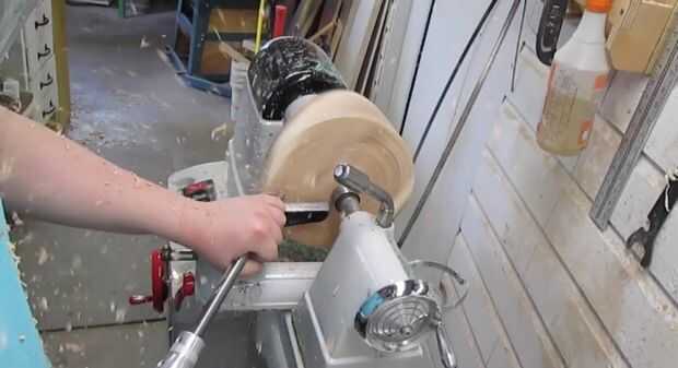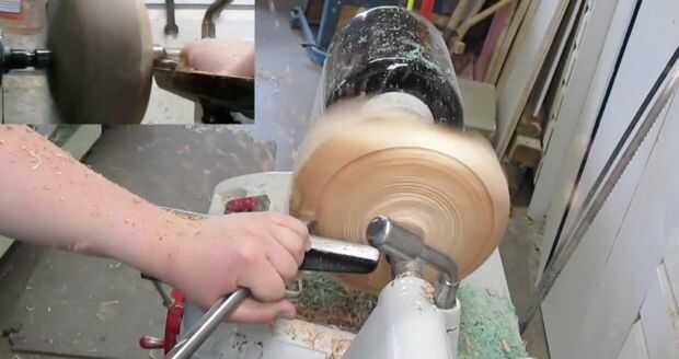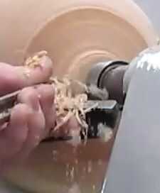Ahora, empiezo siempre utilizando recortes de tirón a áspero en la parte inferior del recipiente. Finalmente empiezo a llevar la espalda todo el labio y curva sobre un poco. Usted conseguirá un corte muy limpio si se corta desde la parte inferior del tazón de fuente al labio porque usted está cortando a través del grano de lado. Velocidad también afecta a cómo limpiar nuestro corte es y cuán rápido podemos conseguir un tazón de fuente hecho. Paso mi velocidad hasta el punto que mi torno salta un poco y luego gire sólo un poco por encima así balanceará hacia fuera. Es generalmente un lugar alrededor de 500-700 RPM. A continuación, áspero en la forma de mi espiga con una gubia de tazón de fuente y finalizar con un escoplo. Si se gira con una placa frontal entonces este paso no se aplica.