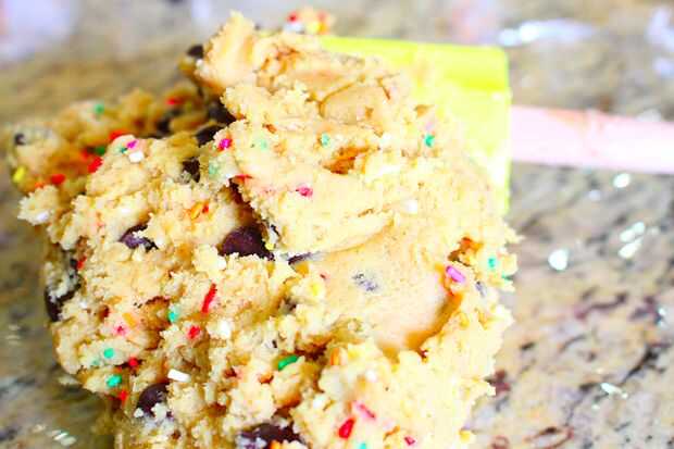este cupcake con pasta de la galleta real en el centro y coronado con una escarcha de azúcar morena. También he utilizado este glaseado para hacer sándwiches de galleta de chispas de chocolate!Chocolate Chip Cookie masa magdalenasRendimiento: 24 cupc