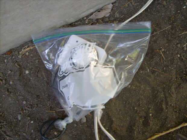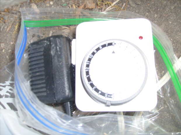 Corte las esquinas dos inferiores la bolsa ziplock. Enchufe el transformador en el temporizador. Conecte el temporizador en el cable de extensión. Ejecute que el transformador conduce a un lado y la extensión hacia fuera el otro. Envoltura de plástico alrededor de alrededor de los cables y zip atar el bolso a los cables.