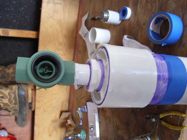 Empezar montando el extremo del negocio. pegamento en su acoplador de 4 pulgadas para el tubo, luego pegue sus bujes en el acoplador. a continuación el tubo de una pulgada va dentro del buje, entonces el adaptador de mpt una pulgada pega en el tubo de una pulgada. por último, pegar el end cap y shrader ensamble de la válvula en el otro extremo. no olvide de mirar las fotos, explican mucho mejor de lo que nunca pude.