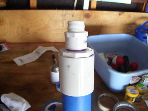 ser shure para dejar un final abierto para el proyectil. el acoplador de 2 pulgadas para el tubo del pegamento y pegamento en el reductor de 2-1, luego el niple de 1 pulgada, y el adaptador de la MPT.