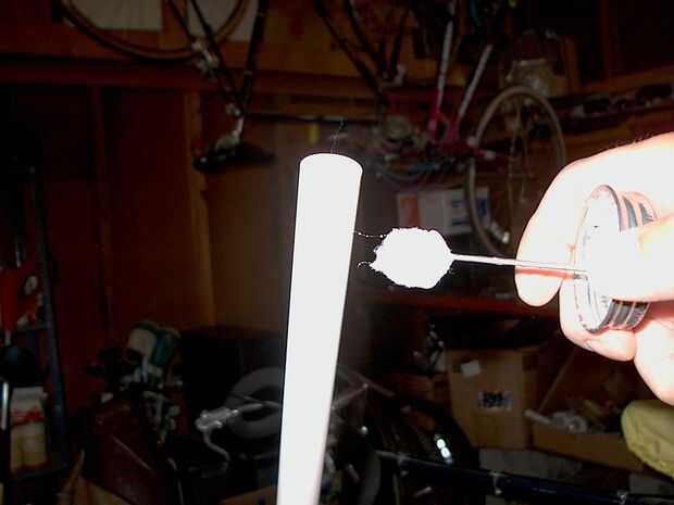 Este paso sucede muy rápidamente.  Cuando el cemento toca el primer forma un enlace casi instantáneo.  Aplique cemento al exterior del extremo de una pipa.  Ligeramente una slp extremo de conector para tubo y grifo en su lugar con el martillo.  Limpie el exceso de cemento.   Repita para el otro extremo de la tubería.