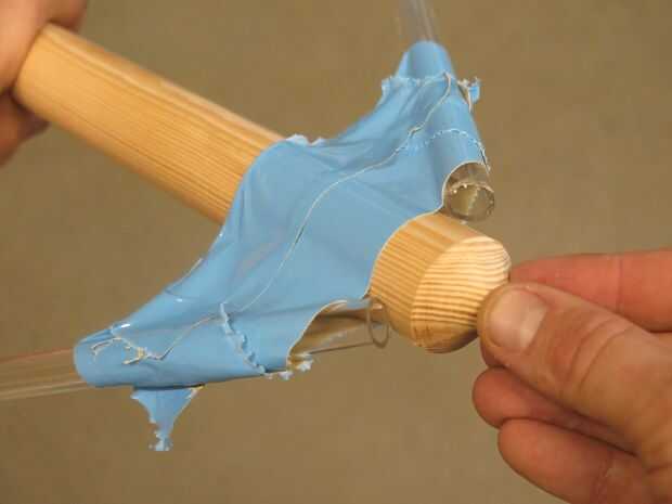 Materiales:Globos x 3Bolsas de plástico x 3Cinta de enmascararExpansión de espumaPantimediasTuberia de riegoRiego se une - ángulo recto x 18, x 1 Cruz, en forma de T-x 2Palillo del resplandor x 2Pelotita de ping pong x 1Bridas x 4Envase de la medicin