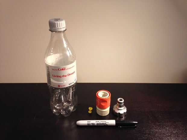 el otro día, era más de 100 grados, y la niña necesita diversión de verano. Un rociador de césped habría sido grande, pero no tengo uno. Me dirigía a la papelera de reciclaje y sacó una botella de refresco de 2 litros.En mi caja de piezas de fontaner