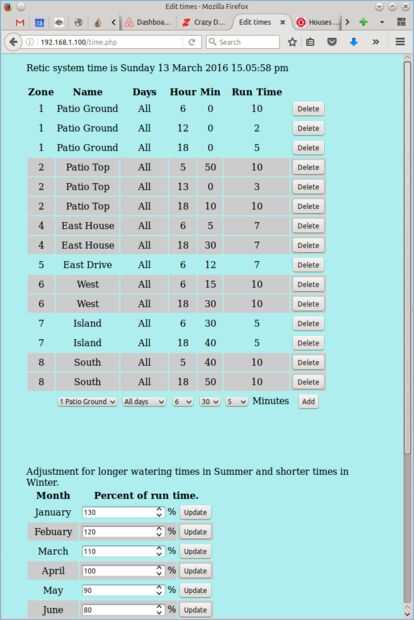 Esto es esencialmente lujo temporizadores con alumbrado, previsto ejecutar que una zona 8 reticulado sistema de riego programable mediante una interfaz web.