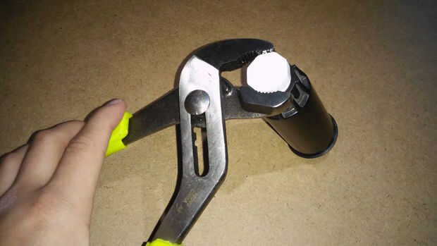 2. Enroscar el tapón en el cárter. Esto es donde puede que necesite ayuda con una llave o channellock pinzas. Asegúrese de que existe un ajuste exacto.