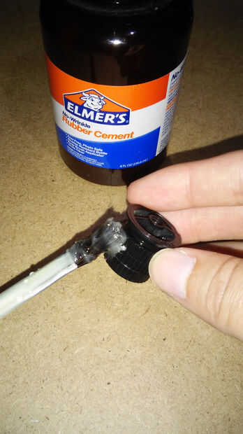 Nota: usé pegamento de caucho para esta parte porque eso es lo que tenía que poner alrededor de la casa. En retrospectiva, habría probablemente utilicé pegamento gorila ya que es mucho mejor en adherirse al plástico