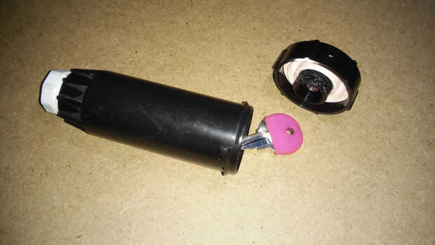 2. pegar la parte superior del aspersor en la tapa. Deje que el pegamento fijar.