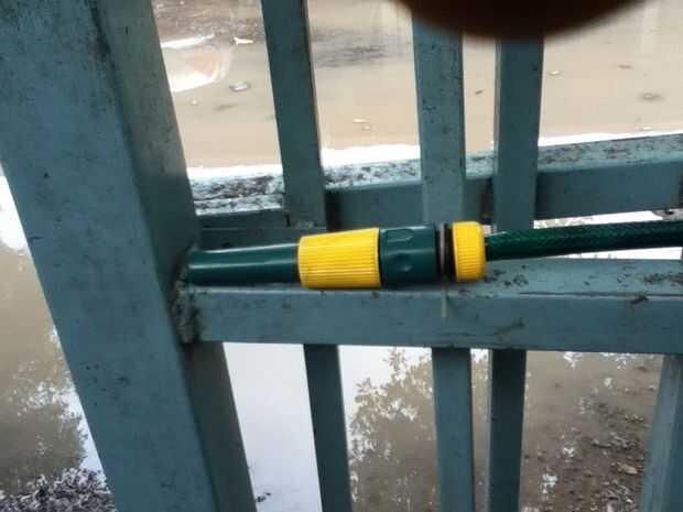 Con la manguera esta aquí será su último paso. Ponga la cabeza de la manguera para parar el agua que sale y el otro extremo al grifo listo para usar