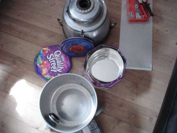 Puede utilizar cajas de lata de galletas para crear las cámaras de árbol dependiendo de la forma de la vacum cleaner que usted puede encontrar otros recipientes más adecuados. los contenedores también deben ser capaces de encajar dentro de otro con un ajuste estrecho en la parte superior y botón pero dejando algo de espacio a los lados para recoger el polvo.