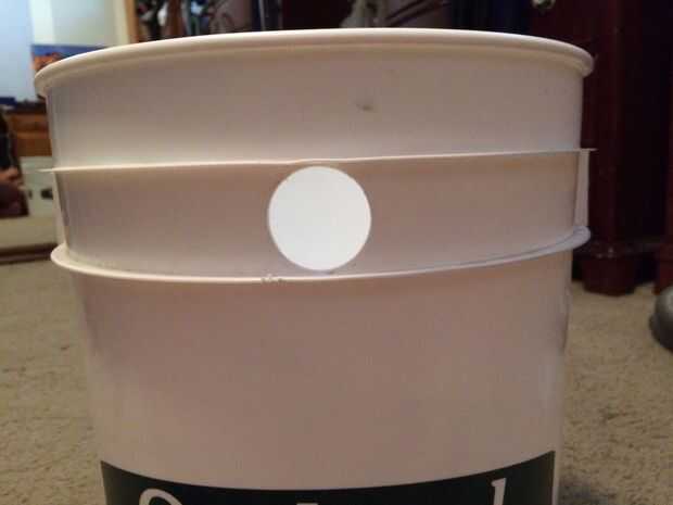 La primera cosa a hacer es taladrar un agujero cerca de la cima en el cubo de la manguera. Tip.don't hacer el agujero más grande de la manguera es siempre hacer que sólo un poco más pequeña o el tamaño exacto de la misma.