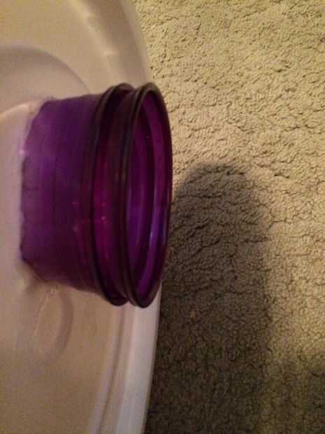 Ahora poner las tazas en el agujero que hiciste en la tapa. Deje aproximadamente 1 1/2 pulgadas de la Copa sobresale de la parte superior de la tapa. Utilice pegamento caliente y hacer un sello en la parte inferior de la tapa para que no se en el aire.