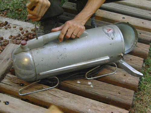 El primer paso fue desmontar la aspiradora, para retirar el motor.