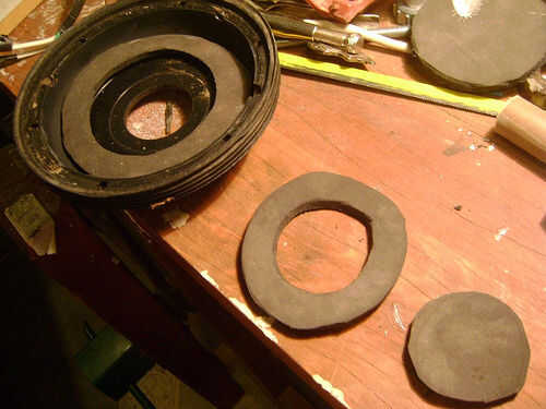O alto-falante ficou com alguma folga e eu cortei uns anéis de EVA, para sustentá-lo melhor.