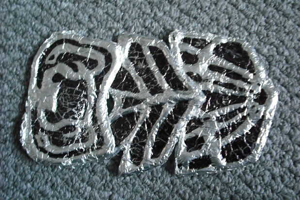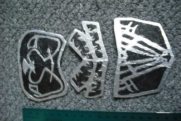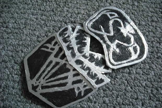 Las placas son hechas también de material de desecho. Si tienes una de esas carpetas de escuela barata, especialmente si los anillos se rompen, altamente sugiero utilizarlos, la cartulina en ellos es bastante fuerte ya que no es corrugado.
