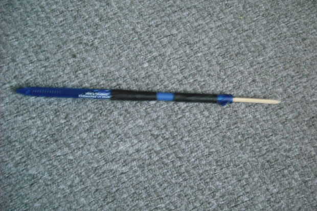 Usted puede tener un tiempo difícil hacer la hoja oculta. Como sé que hay absoluto derecho absoluto para hacer uno, su especie de un "a cada su propio" tipo de cosas. La forma más precisa de hacerlo es comprar una espada de tai chi telescópico de una tienda o sitio web de artes marciales, pero estos generalmente vienen en 25 dólares. Además quería ir para un enfoque más DIY y mina puede ser una de las mejores maneras de hacer de materiales de desecho. Ninguna espada de Tai Chi. No gabinete deslizantes. Dos bolígrafos, palillos, papel de lija y cinta.