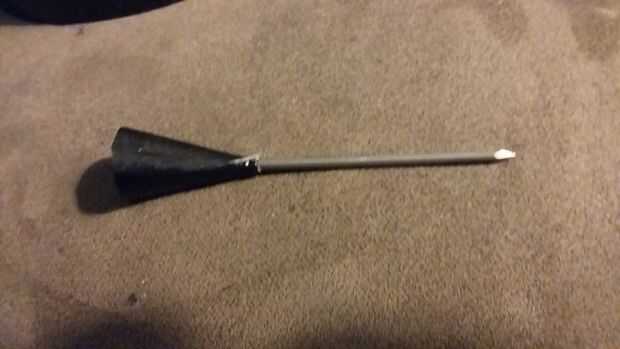 Corte la punta de los dardos que ya han hecho entonces el puso un clavo en el agujero puede fijarlo con pegamento caliente pero no hizo eso en caso de que el clavo recibe en mal estado se puede tomar la uña hacia fuera y poner el dardo en otro clavo.