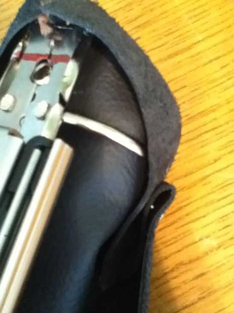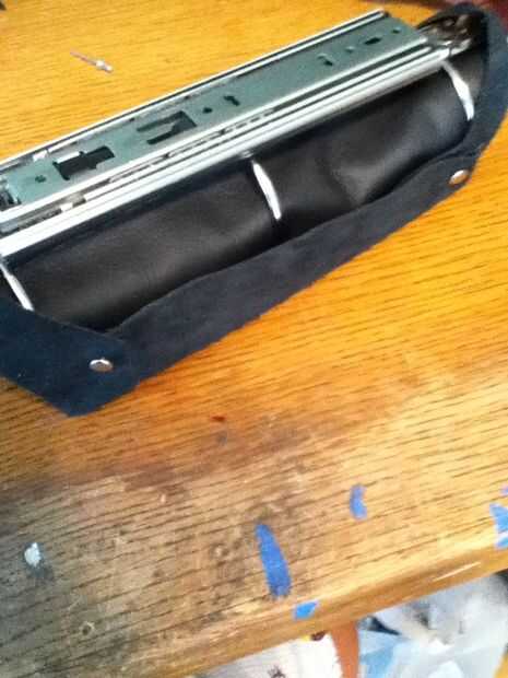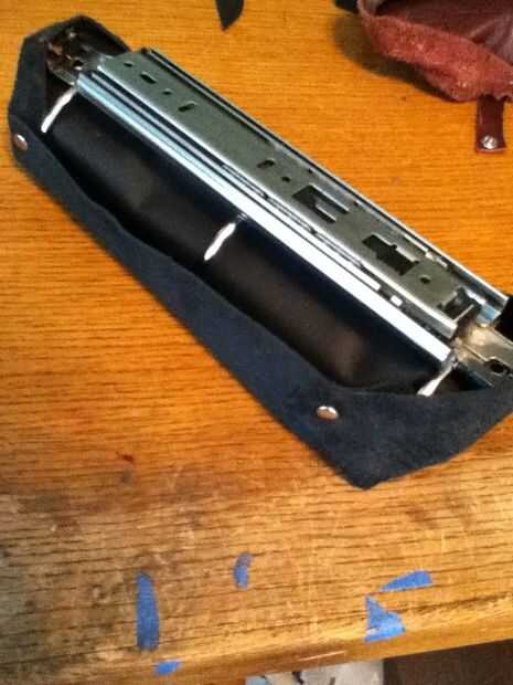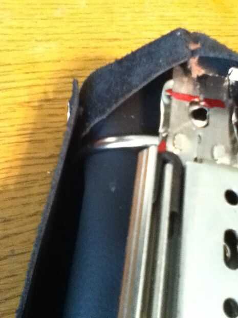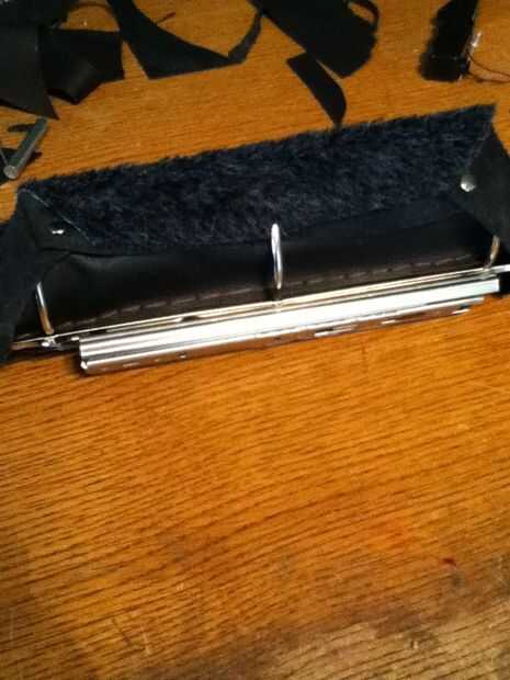Si no tienes una hoja de cuero e grande debería caber alrededor de su clip de carpeta entonces puedes hacer lo que hice y coser el cuero junto a la forma una sheet.then grande Envuelva la piel alrededor de la carpeta y marca donde quiere el cuero y cortar. Luego uso cuero remaches para hacer el cuero apretado. Luego puede poner falsa o verdadero de la piel en el interior para hacer el ajuste más apretado y se ve cool