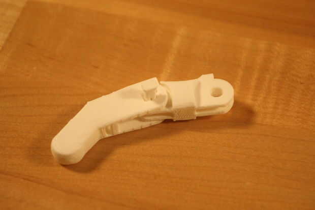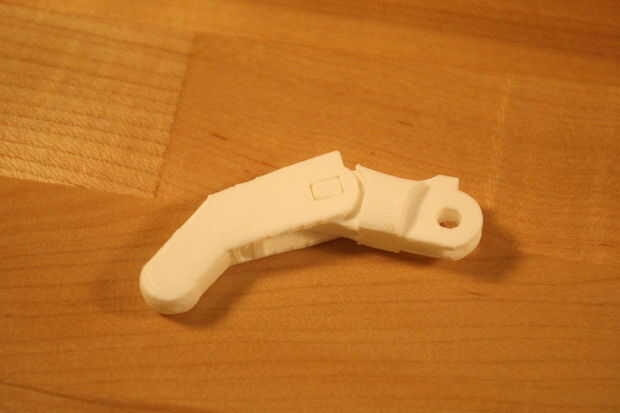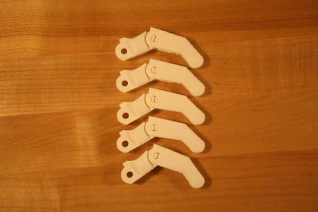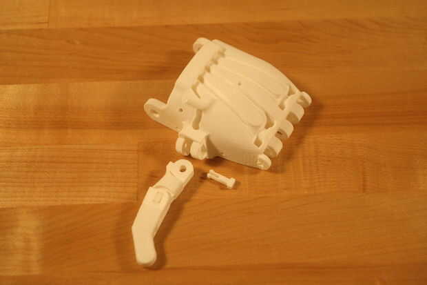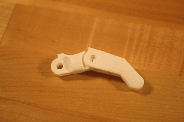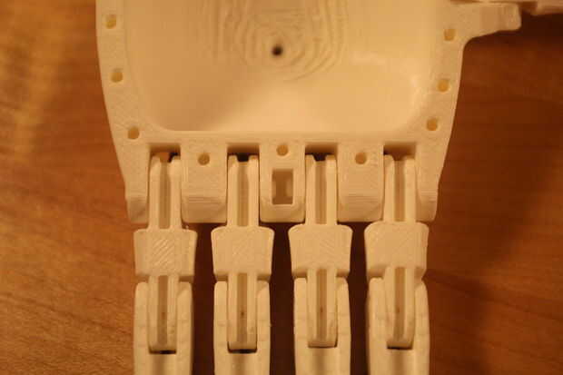 Empezar por eliminar la estructura de soporte, que se puede hacer insertando cualquier herramienta afilada entre la palma y la estructura de soporte y torcer. A continuación, compruebe los dedos defectuosos. Pequeños trozos de filamento a veces caer en el hueco rectangular para el snap perno cabeza, asegúrese de quitar estos para asegurar los asientos de ajuste perno bien.