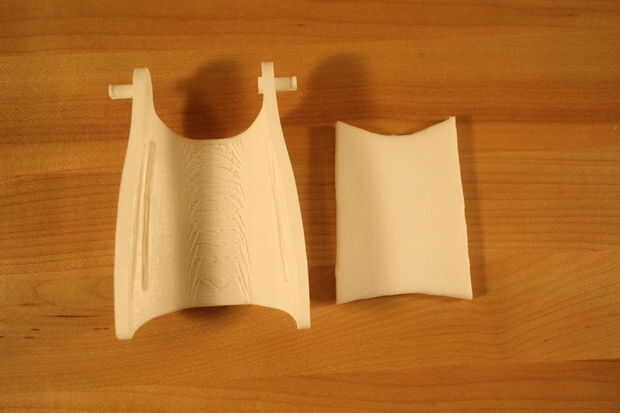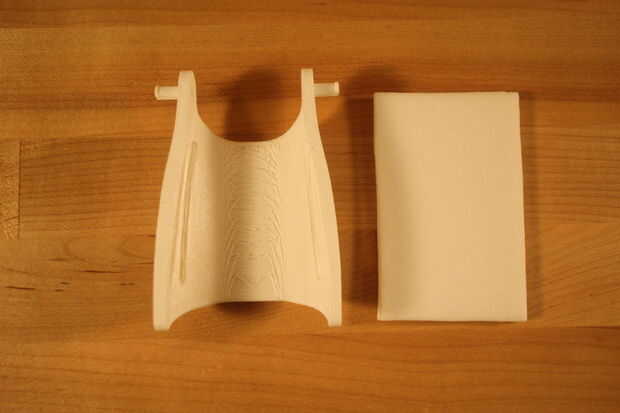Con la espuma misma en cuanto a la palma, corte una sección de aproximadamente coincide con la superficie interna del guantelete. Me parece más fácil quitar el guante de la palma para esta parte o hacer antes el tensor. Con mejor acceso para el guantelete, puede utilizarse un lápiz para trazar el borde del guante sobre la espuma para un ajuste limpio.