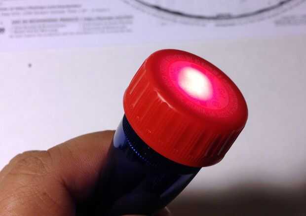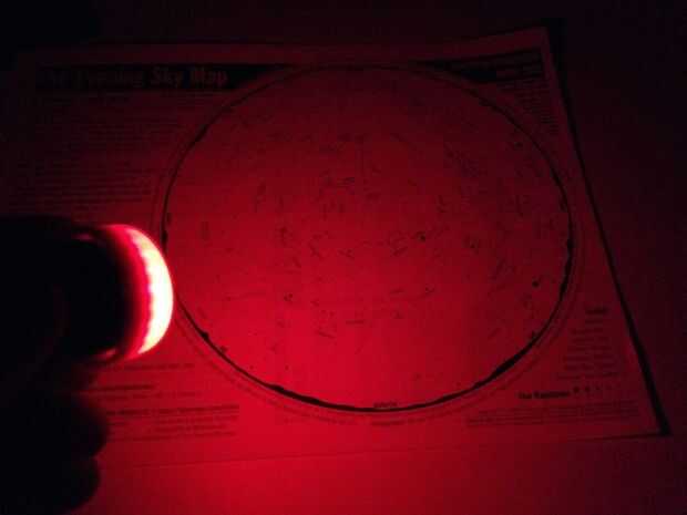 Cuando mires directamente la cubierta iluminada, puede ser engañar pensando en el rojo el color no es lo suficientemente profundo. Pero la verdadera prueba de la luz en la oscuridad y probar en un starchart.