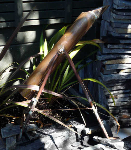 Después de haber decidido que quería incorporar algunos arte cinético, comencé buscando alrededor de inspiración. Quería algo que sería relativamente robusto, fácil de construir y mantener y no sería demasiado melindrosas como viviría totalmente al aire libre a merced de los elementos. Había oído hablar vagamente de un asustador de venados, pero era bastante ignorante en cuanto a detalle; así que, como todos buenos proyectos, esto comenzó con unas horas de desplazamiento a través de la ' red para ver exactamente lo que un ciervo asustador, cómo se hizo y cómo otros hicieron. Una simple búsqueda de Google en "asustador de ciervo japonés" producirá una serie de imágenes, instrucciones paso a paso para la construcción uno y discusiones sobre y alrededor del asunto. A partir de ahí fue muy fácil traducir el diseño de bambú tradicional en cobre.
