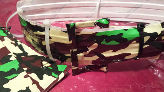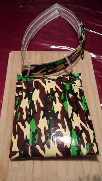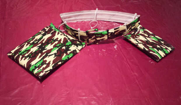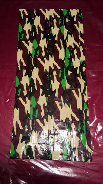 Para hacer los bolsillos, había pegado dos capas de cintas de ducto blanco entonces había cubierto con la cinta de camuflaje. Cuando hice el bolsillo largo de 9 pulgadas, me utiliza el doble de la longitud de la cinta luego doblado sobre sí mismo para hacer el bolsillo. También dejé a un lado del bolsillo expuestos e hizo dos agujeros en cada lado.