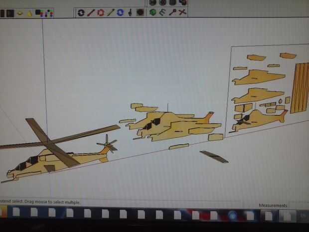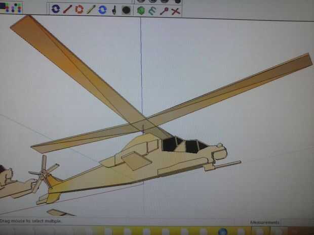 Antes de hacer el modelo físico que hice la cometa en Google SketchUp. Haga clic aquí para una descarga gratuita de este modelo 3D para su propia referencia. El modelo contiene las piezas individuales, Asamblea y fuselaje completo con rotores.