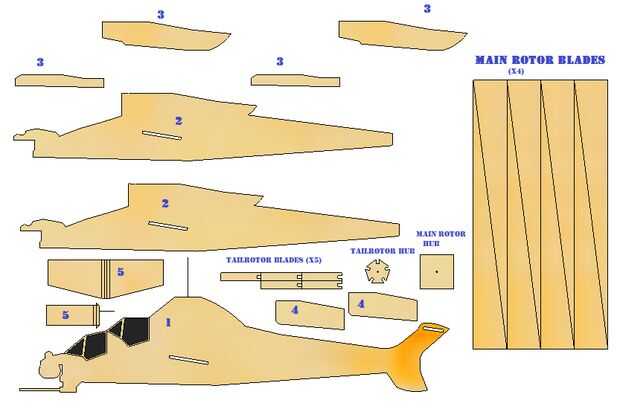 He incluido una numerada plantilla en este paso para copiar y cambiar el tamaño a escala de lo que te puede querer hacer este helicóptero en. Voy a referirme también a las partes más tarde por estos números.