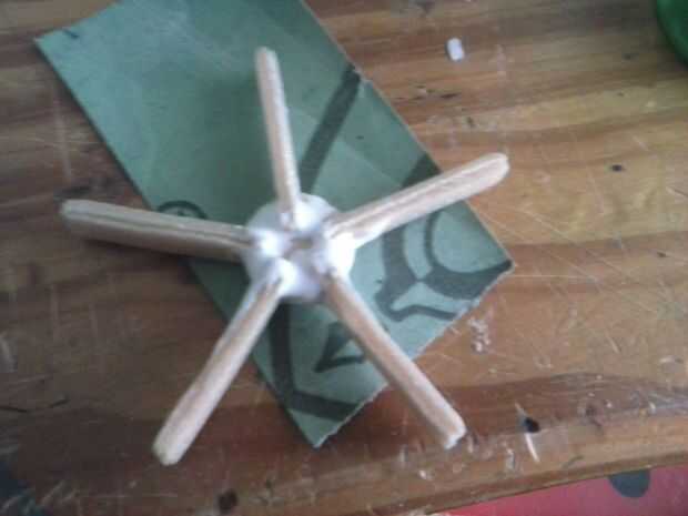 Una vez seco el pegamento, se doblan todas las aspas como se muestra en la última foto. Esto les permitirá girar en el viento.
