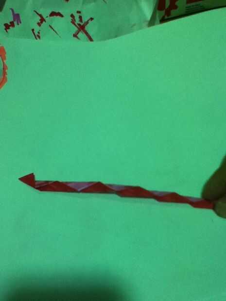 a continuación, doblar el resto del papel en un ángulo, el lado izquierdo detrás de a toque la inclinación del triángulo hecho en el paso anterior. A continuación, tire de la derecha detrás de tocar la nueva inclinación. Continúe esto hasta el final. El proceso debe ser como un movimiento de zig-zag. Debe crear triángulos en un patrón.