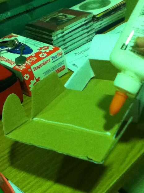 Poner una tira de pegamento en la bisagra superior de la tapa de la caja. Sujete la tapa de la caja en ángulo recto. Tirar el papel a la tapa de la caja Asegúrese de que es apretada por lo que los corazones se verán forzados hacia fuera al abre la caja.