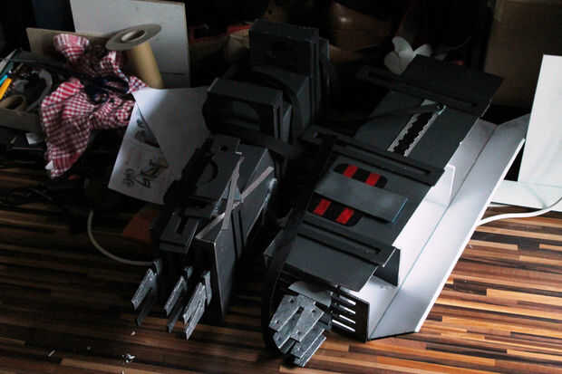 Las cajas de las piezas deben ser pintadas - pintura en aerosol es la manera más fácil y rápido y creo que en esta cantidad más barato luego, utilizando acrílicos y pinceles. Así que hemos creado una pequeña área de la pintura en mi balcón. TENGA EN CUENTA!! Cuando se usa es una) recomienda utilizar una máscara, b) muy muy bien que algunos viejos de cartón debajo de la pintura de aerosol y c) puede crear un aspecto metálico silver-ish capa base gris/negro las piezas en oscuridad y entonces agregar spray plateado en la parte superior.
