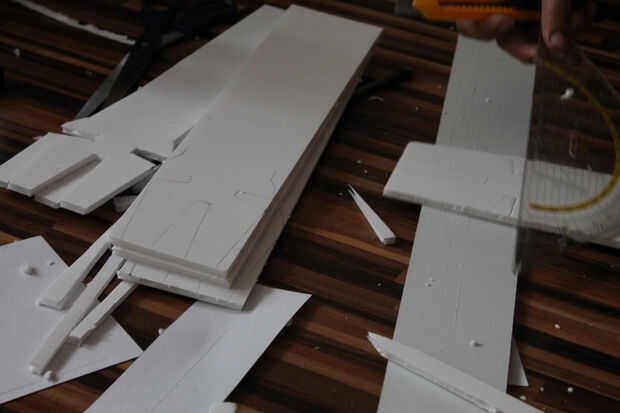 Para las cajas necesita 2 hojas grandes de Junta de espuma de poliestireno/kappa (los 70x100cm; alrededor de 5mm de espesor)
