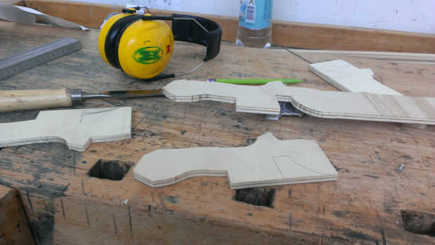 Utilizando una curva de la sierra para cortar más o menos todas las piezas y pegamento de madera y pinzas para reunirlos. (pic.4)