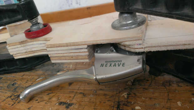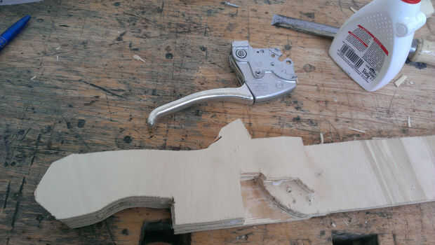el centro uno y dentro de la pieza de madera debían modificarse un poco, para que la rotura de la bicicleta encajaría bien en el mango de madera! (Fig. 3/4)