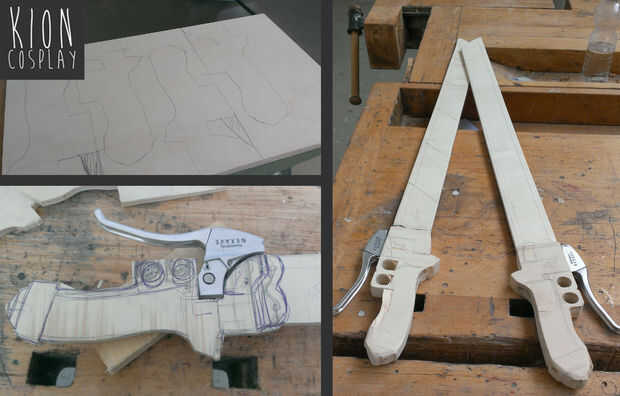 Las espadas están hechas de madera contrachapada de 3 mm. Ya los mangos más gruesos del bigh hice de 3 capas: exterior-hoja-interior! (Ilustración2)