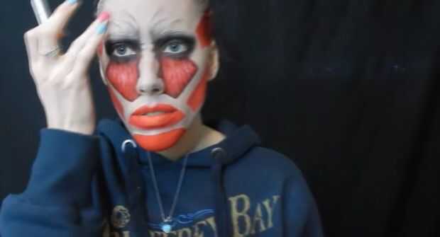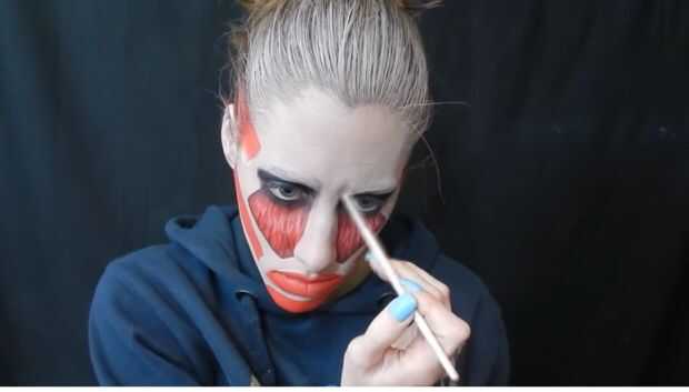 sombra marrón he añadido algunas arrugas enojados, entonces tomando pintura corporal negra les fui ligeramente, luego con lápiz jumbo de nyx blanco en leche he añadido destacados.