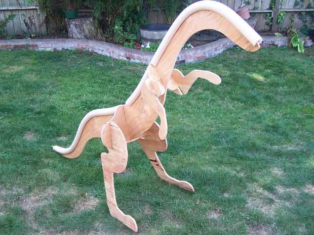 Cortar el cuerpo con una sierra de calar primero, luego las caderas, luego las piernas, luego los hombros y brazos. Nota: terminé cortando la "nariz" del esqueleto para adaptarse mejor a mi dino-cabeza: su kilometraje puede variar.
