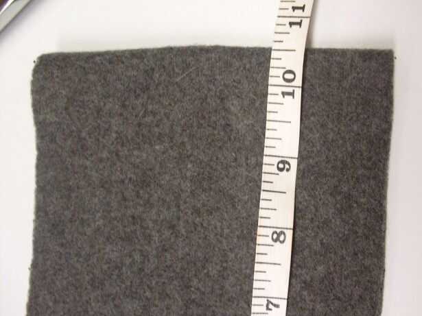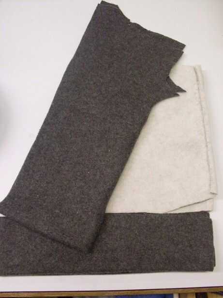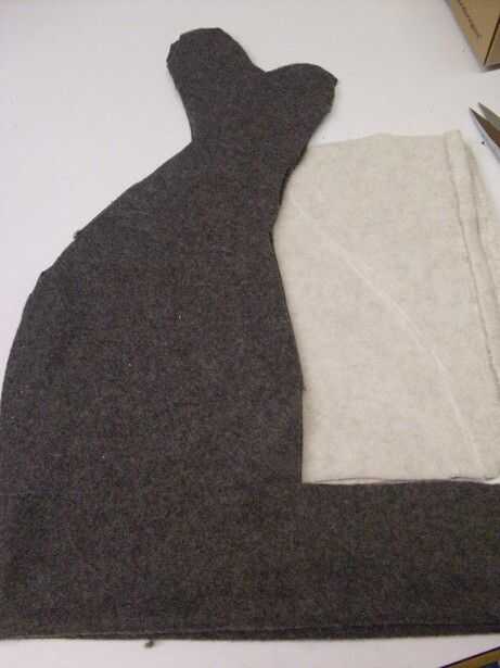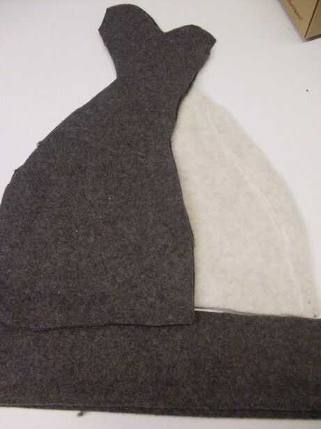Sólo a partir del borde, cortar un rectángulo de 6 pulgadas por alrededor de 21 pulgadas de lana gris oscuro. Corte en el pliegue. Usted tendrá que ajustar el largo para que te quede la cabeza, si te equivocas esta parte, usted tendrá un montón de problemas más adelante. (En caso de duda, cortar más grande!)