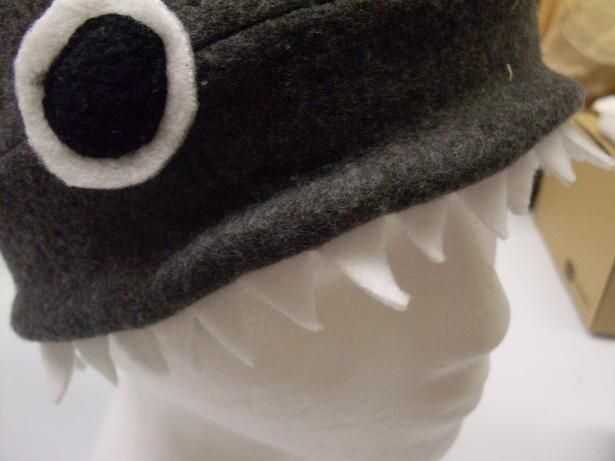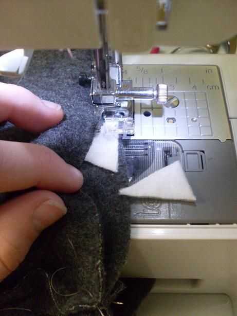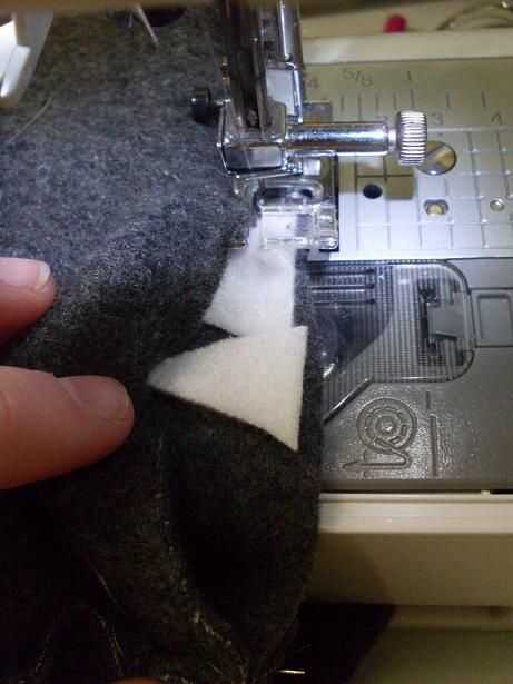 Para coser en, comience con su salida de lado derecho de cuerpo de tiburón y la segunda pieza de borde interior hacia fuera. Poner el borde sobre la otra parte del borde. (Lados del derecho juntos) Poner unos cuantos dientes en y comenzar a coser, parando todos los dientes de la pareja para añadir más.