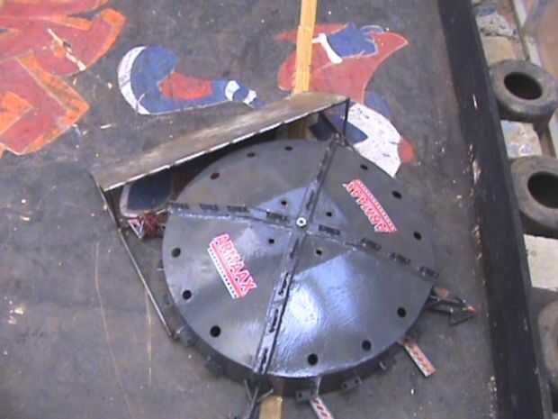 La 'Blitzkrieg' también cuenta con armas intercambiables. Un robot de combate Shell spinner es especialmente débil contra el poderoso Pisones y robots de cuña. Así que para abordar este asunto, hemos hecho una cuña de chapa de acero de 0.3cms grueso, que podría atornillarse en nuestra armadura. Utilizamos esta cuña contra robots y robots con potentes tambores como arma de presión. De esta manera nos niega los efectos de los tambores de gran alcance que sólo serían girar en nuestra cuña. Al mismo tiempo con el alto esfuerzo de torsión, ram el robot donde queríamos y los tambores de estos robots se hicieron ineficaces.