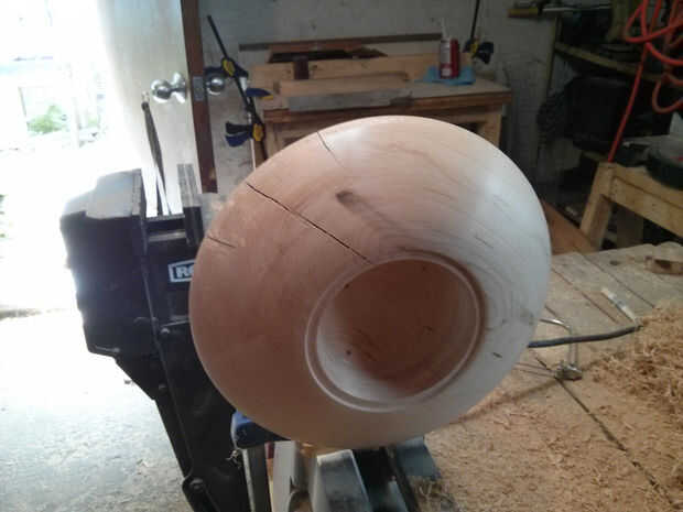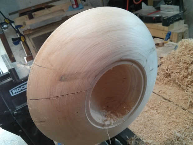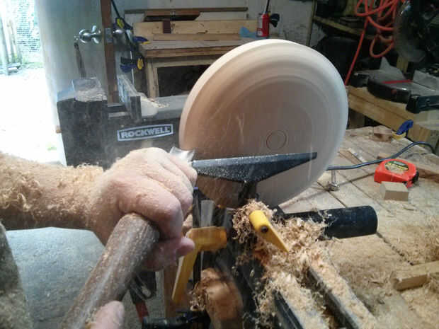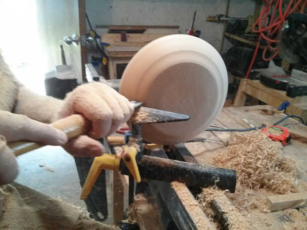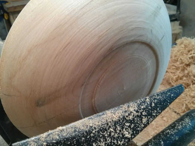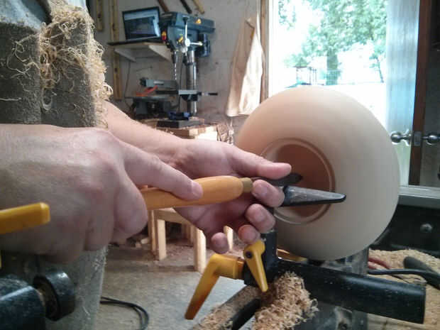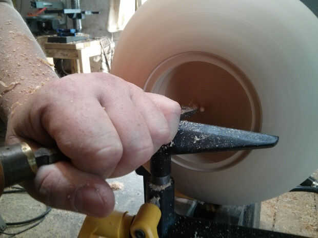 Para crear la cubeta, utilice una herramienta de partición de diamante y tallar un labio, en el interior de la demarcación, que es 1/4" de ancho por 1/8" de profundidad. Luego, con su gubia o raspador redondo, comenzar de taladro de la base restante de la madera a una profundidad de 1.6", asegurando que no penetra en la parte inferior del tablero. Porque el centro está girando bien, necesitarás una herramienta afilada más fina para quitarlo, o usted tendrá que quitar manualmente más adelante por.
