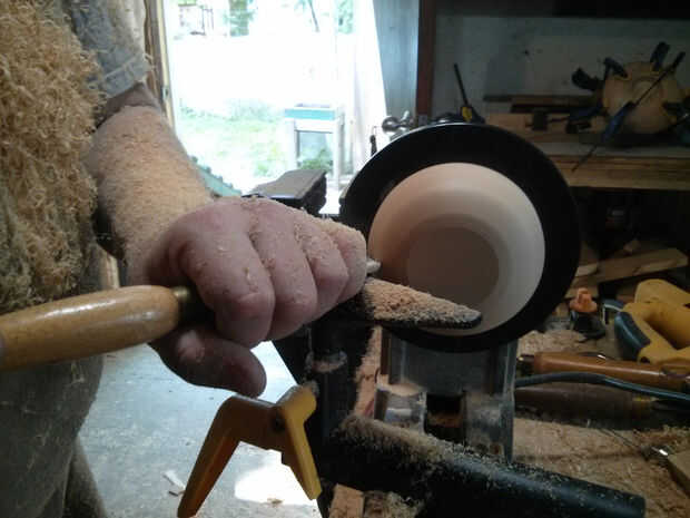 Comenzar disminuyendo con su gubia o redondo raspador creando una forma de media luna. Inicialmente, no crear el ángulo escarpado, sin embargo, no es difícil de volver a instalar el disco y continuar con corte a la forma correcta exacta.