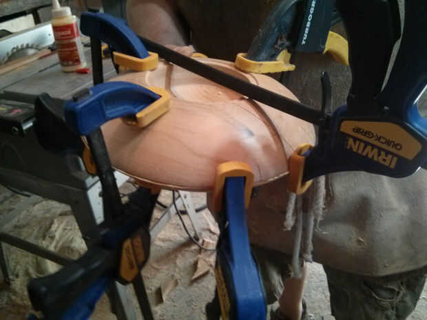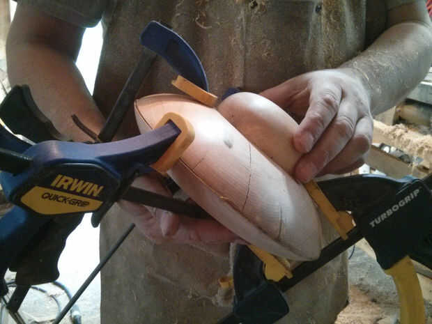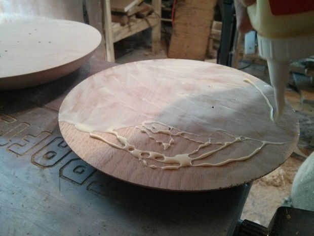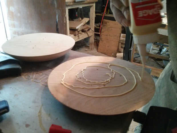 Comience agregando pegamento en la parte inferior plana de sus mitades del platillo, garantizar cobertura del 100%, y luego sujetarlos juntos, lo que permite varias horas de secado. Asegúrese de que la costura se cierra para arriba perfectamente y que no hay ningún espacio, tho se sellarán las costuras más pequeños mediante el revestimiento de madera.