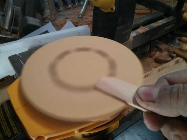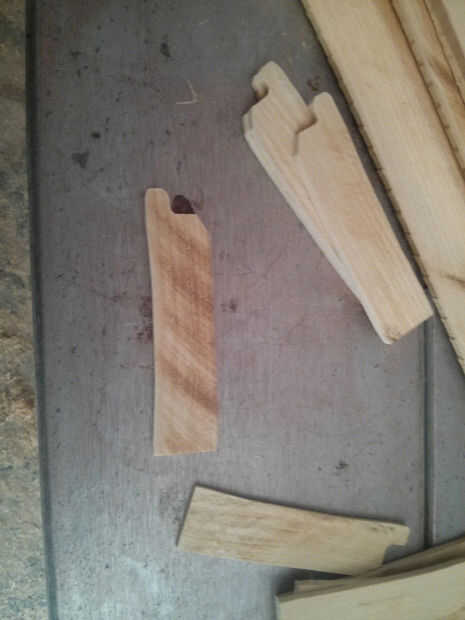 El montaje es una pieza perfectamente rectangular con un borde biselado. Un orificio de 3/8" se perfora en el extremo biselado, centrado y es exactamente 1/4", en el borde del extremo de la madera.