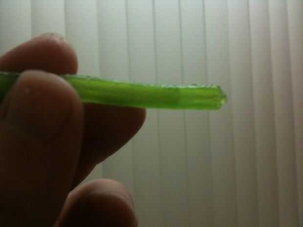 Para los láseres que utilizan algunos amargo caramelo un poco de punch. Lo tenía sobras de los cupcakes que estaba haciendo, así que pensé que pondría a usar. (Bastante impresionante para que todas estas cosas al azar en la casa no tenemos plan este o comprar cosas). A lo verde... Enjuagar lo amargo y deje secar en un plato, pegó un palo duro spaghetti en el tubo y dejado una parte sin relleno de paja para pinchar como un zanco con el resto de lo Bento, sostener en el diseño.