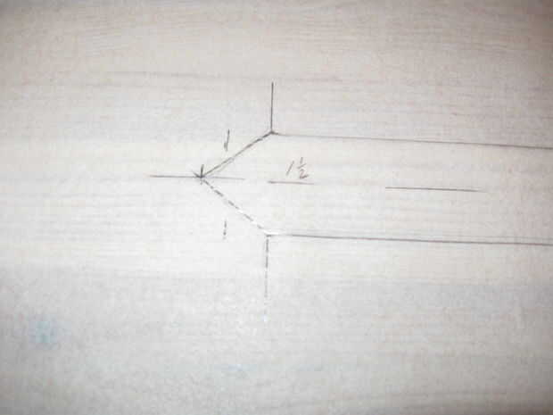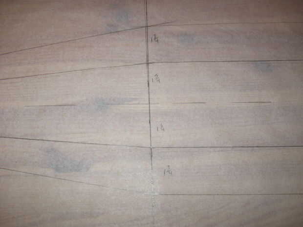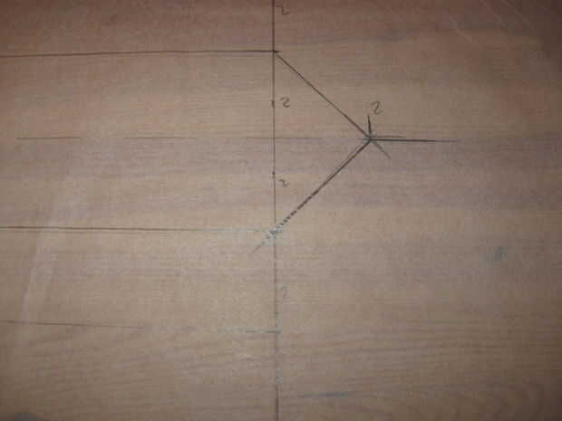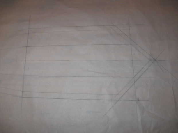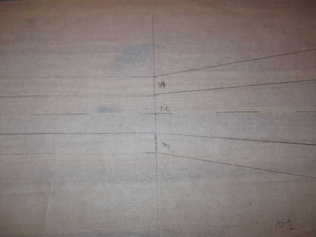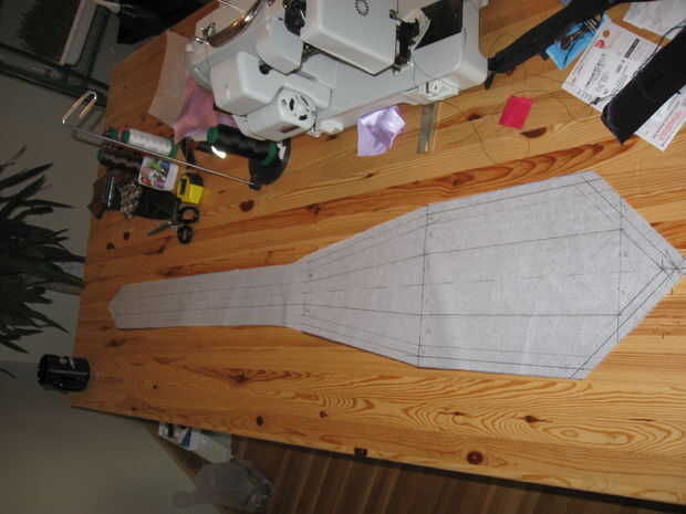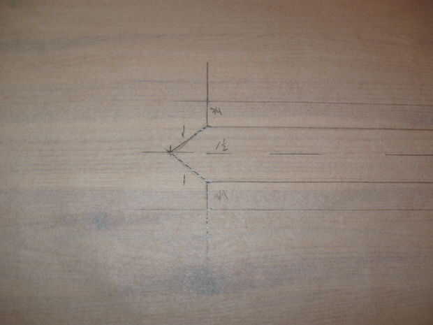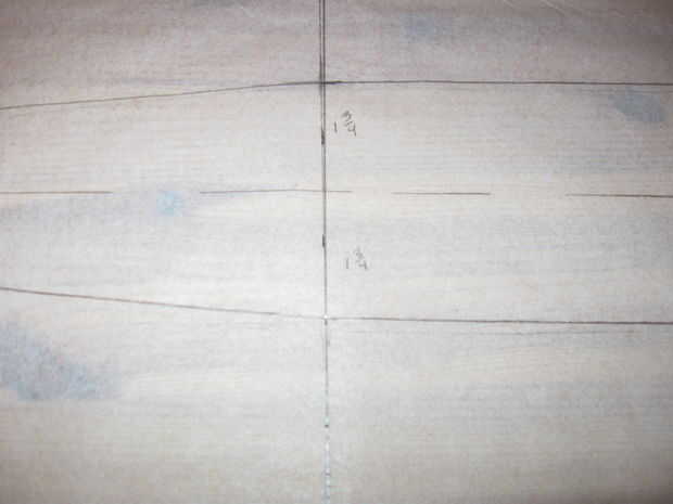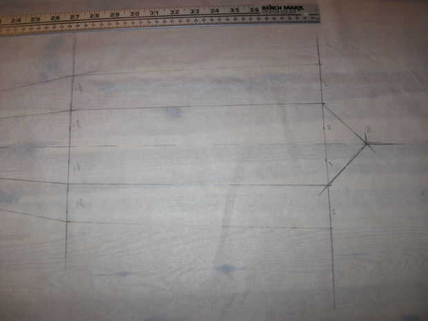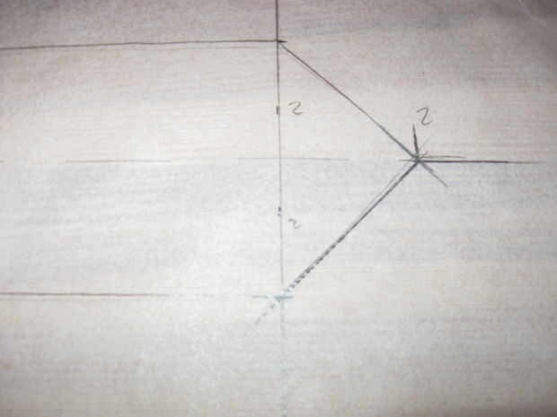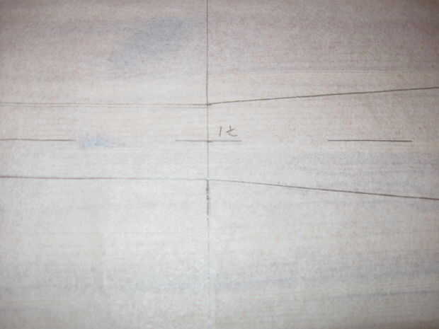 Corbata dibujo entonces se midió desde la línea de centro al borde y el dibujo principal fue aumentado en anchura a ambos lados por esta medida.