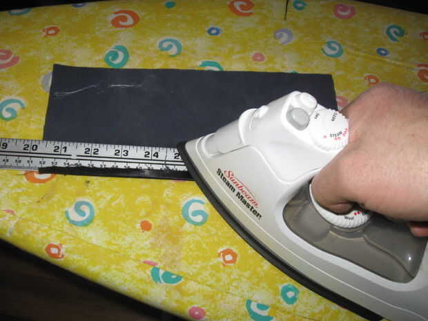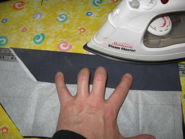 Usé una plancha de vapor para doblar los materiales y añadir puntos de referencia visual en cuanto a donde necesitan cosas cosidas.
