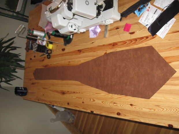 La porción de la cartera de interior fue doblada y planchada para que el lado brillante sería visible cuando el empate se abrió.